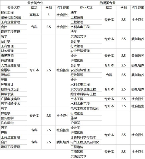 备注: ①我校 2017 年成人高等教育招生专业及代码以各省、自治区招生主管部门公布的为准,请考生报名时认真核对填报; ②根据国家政策,我校 2017 年招收的成人高等教育学生,其毕业证书学习形式只注明“业余”或“函授”,以上报考提示及专业名称中注明专业方向的各专业的毕业证书不加注专业方向。