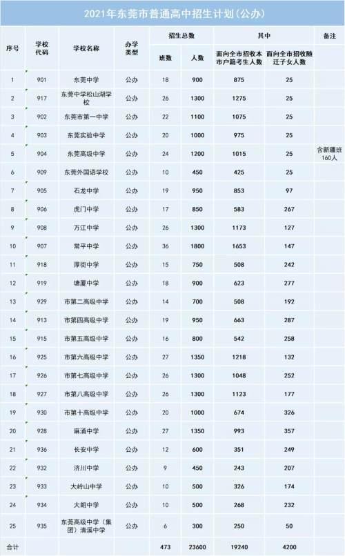 为做好2021年初中学业水平考试与高中阶段学校招生工作,便于家长和考生了解学校招生情况,东莞市教育局4月20日公布2021年高中阶段学校招生计划。