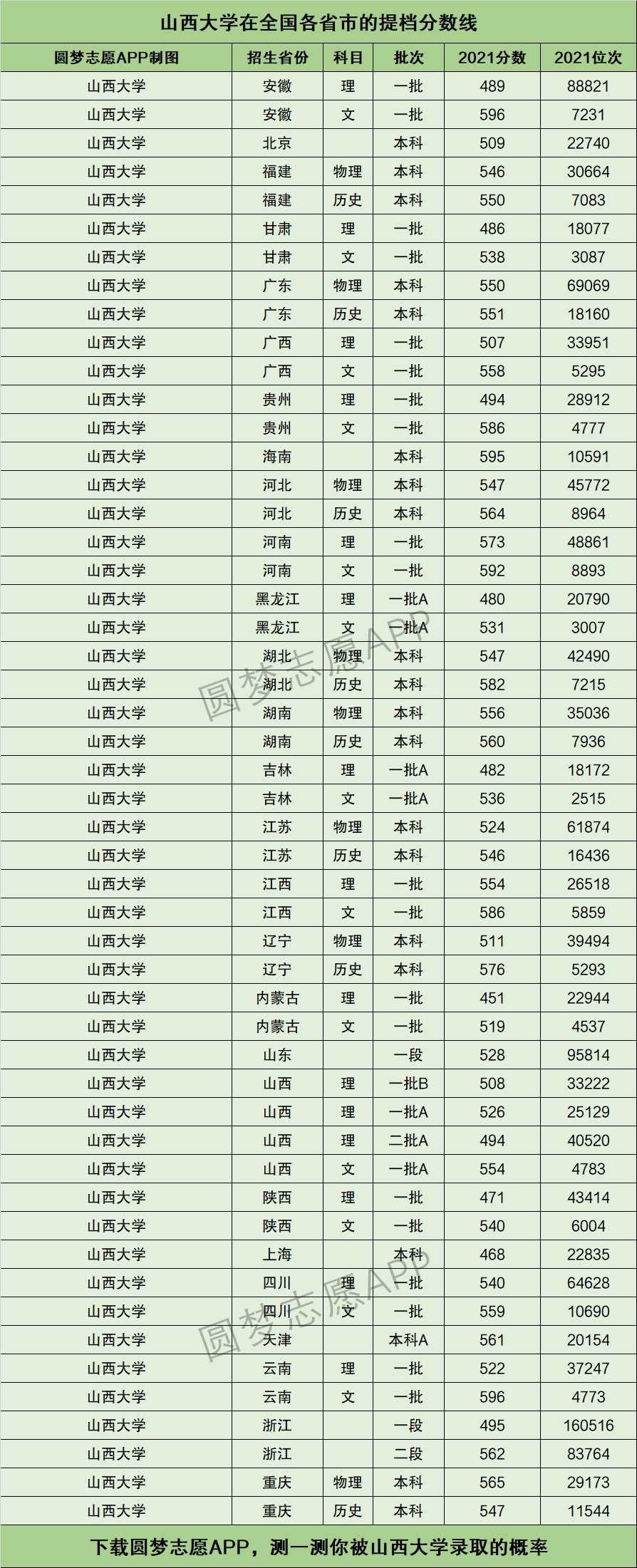 如果你想查看:山西大学各专业——近三年的录取分数线和位次。请直接在手机应用市场,获取资料。