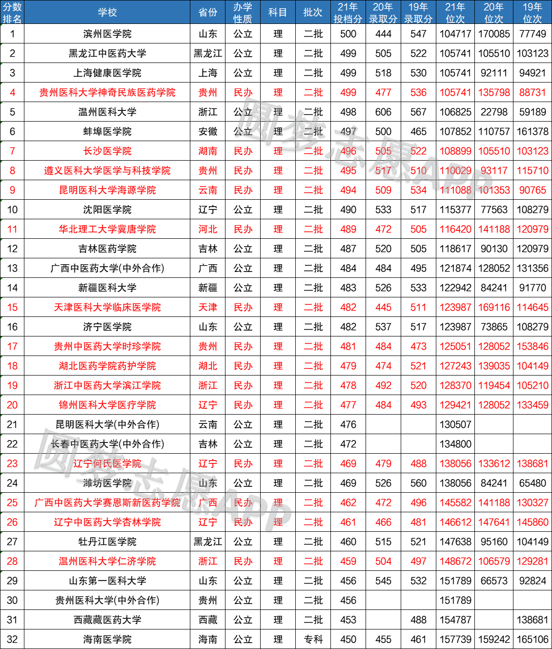 以下为450~500分医科大学具体名单:
