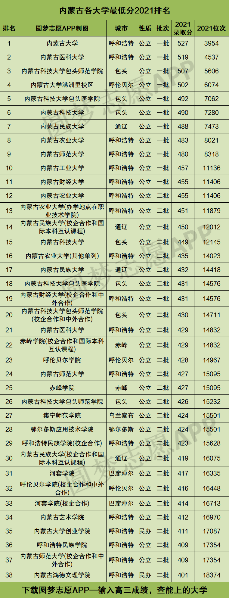 二、内蒙古所有大学排名及录取分数线(本科+文科)