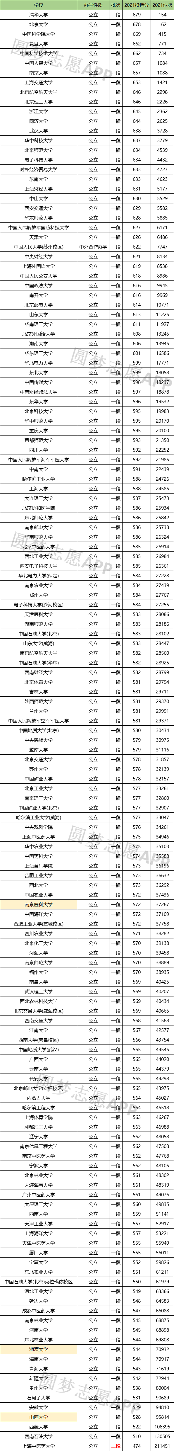 下面是147所双一流建设高校录取分数线排名2021最新排名一览表: