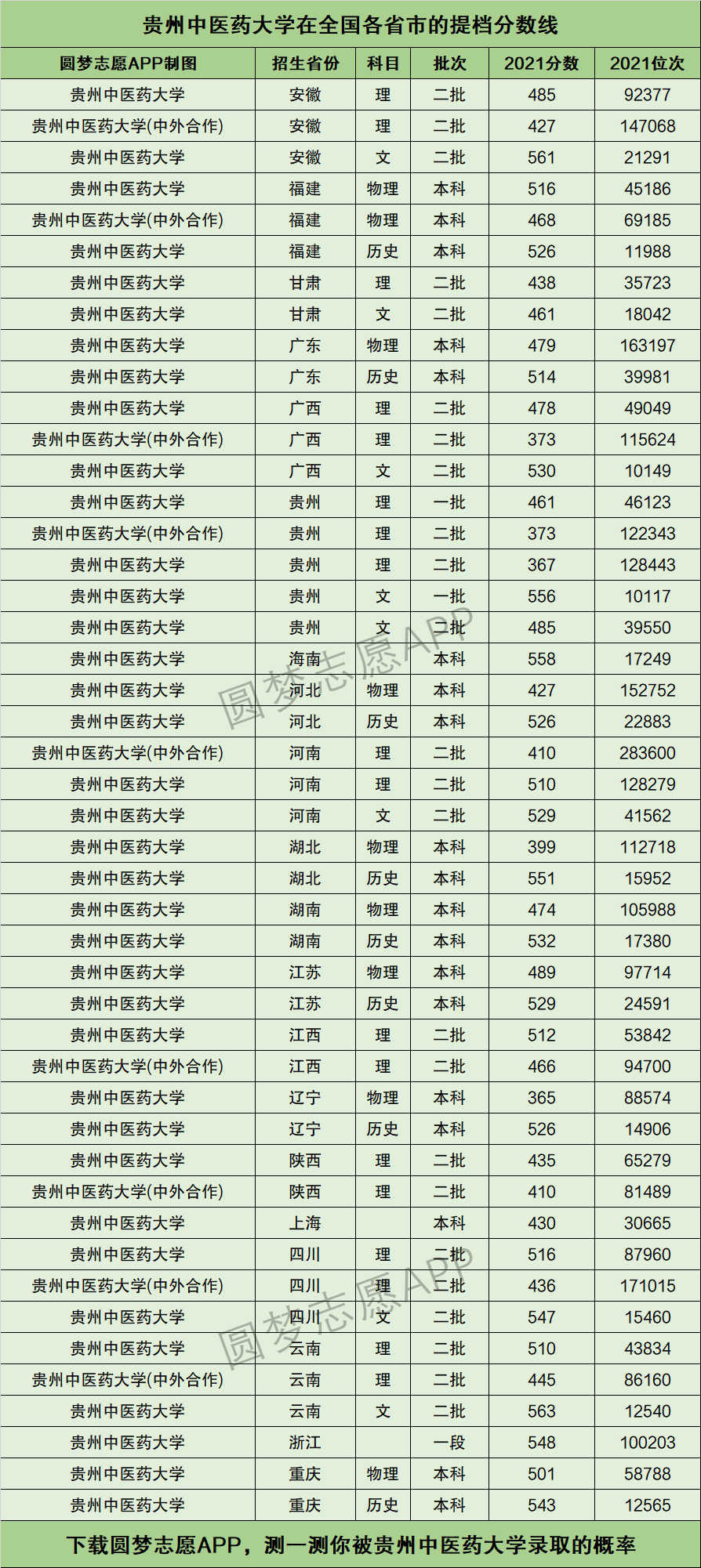 贵州中医药大学2021年的提档分数线是多少?贵州中医药大学的调档比例是多少?本文将为大家奉上这些重要信息,希望2022年的高考生了解贵州中医药大学在全国各省市的最低分数线及位次后,都能被贵州中医药大学给成功录取。