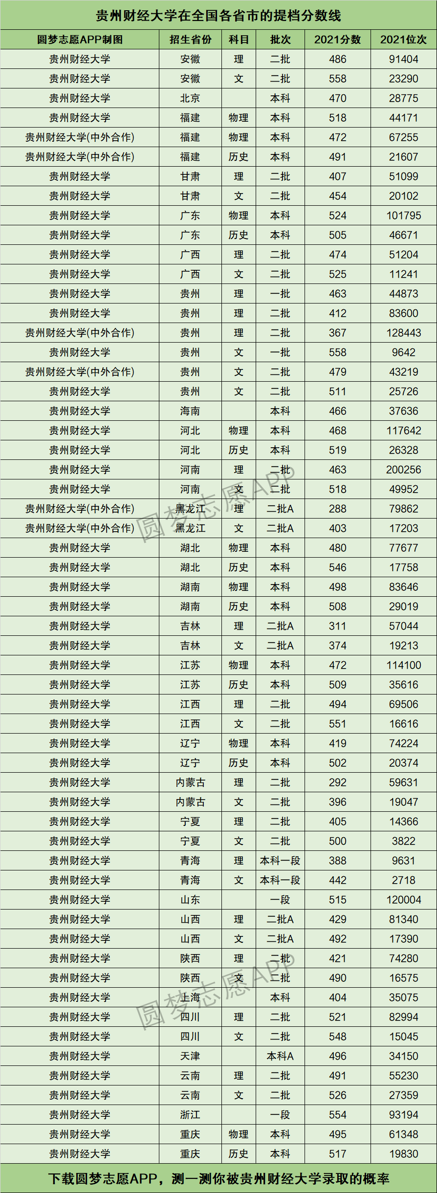 贵州财经大学2021年的提档分数线是多少?贵州财经大学的调档比例是多少?本文将为大家奉上这些重要信息,希望2022年的高考生了解贵州财经大学在全国各省市的最低分数线及位次后,都能被贵州财经大学给成功录取。