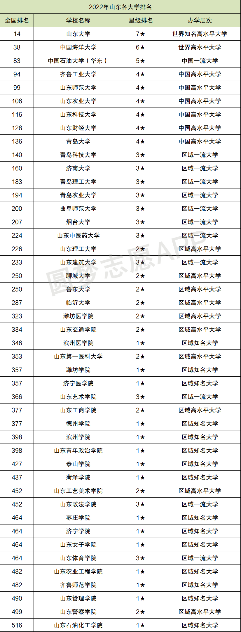 因为公办院校、民办院校/独立学院、本科与高职院校都是分开进行排名的,小编就根据校友会2022年公布排名,来为大家整理出山东各大学排名表,供大家参考。