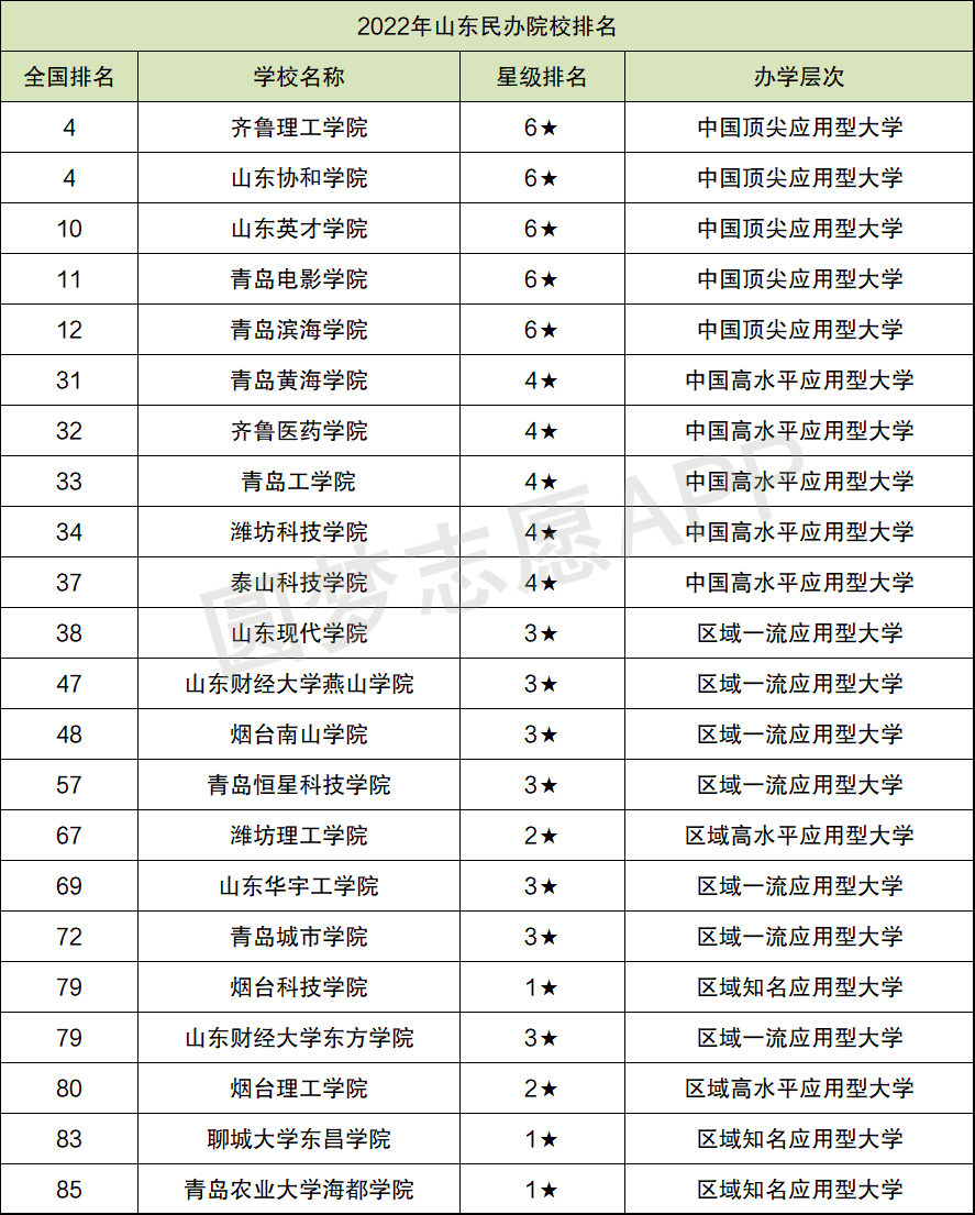 山东民办院校排名: