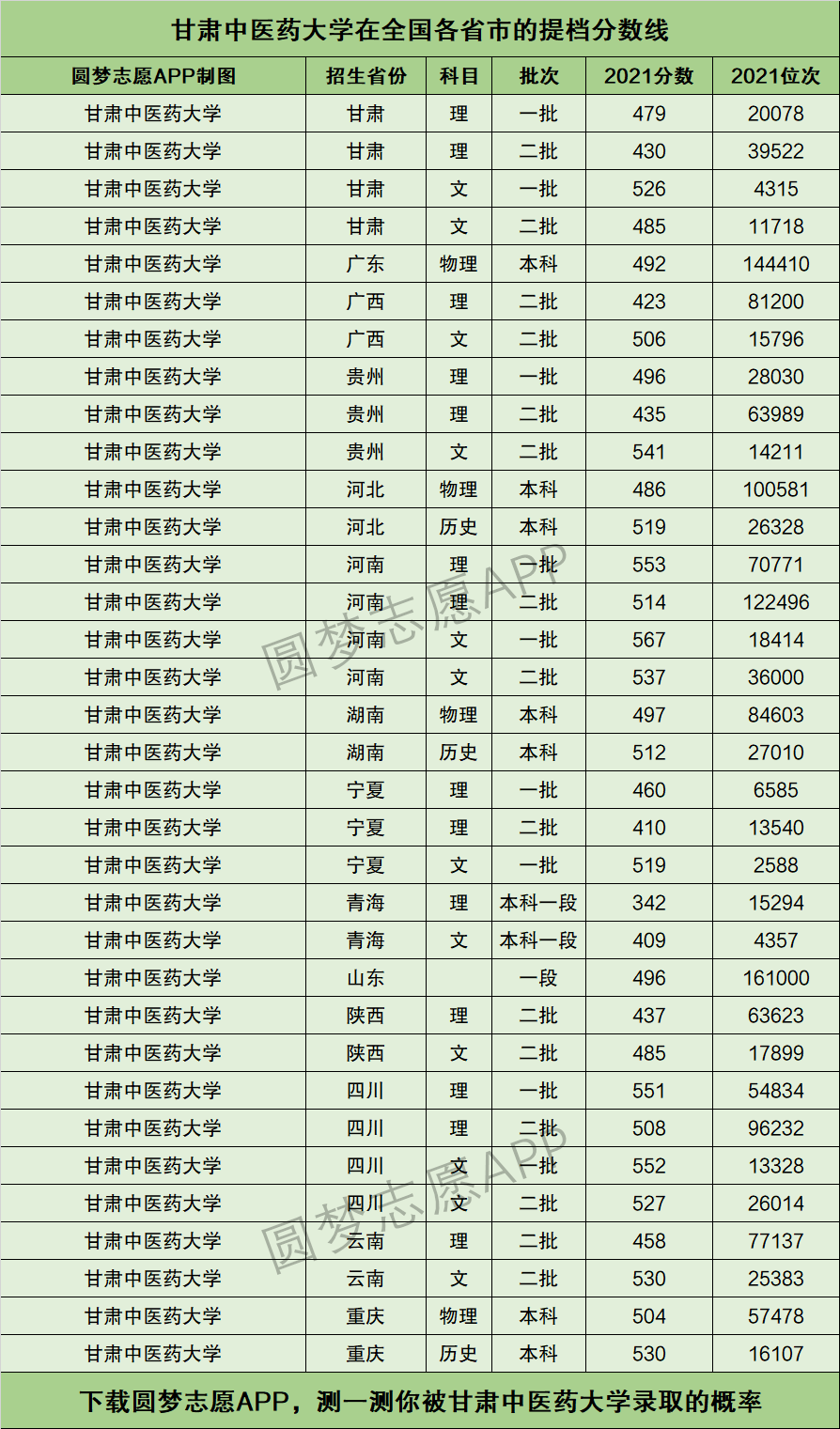 如果你想查看:甘肃中医药大学各专业——近三年的录取分数线和位次。请直接在手机应用市场,获取资料。