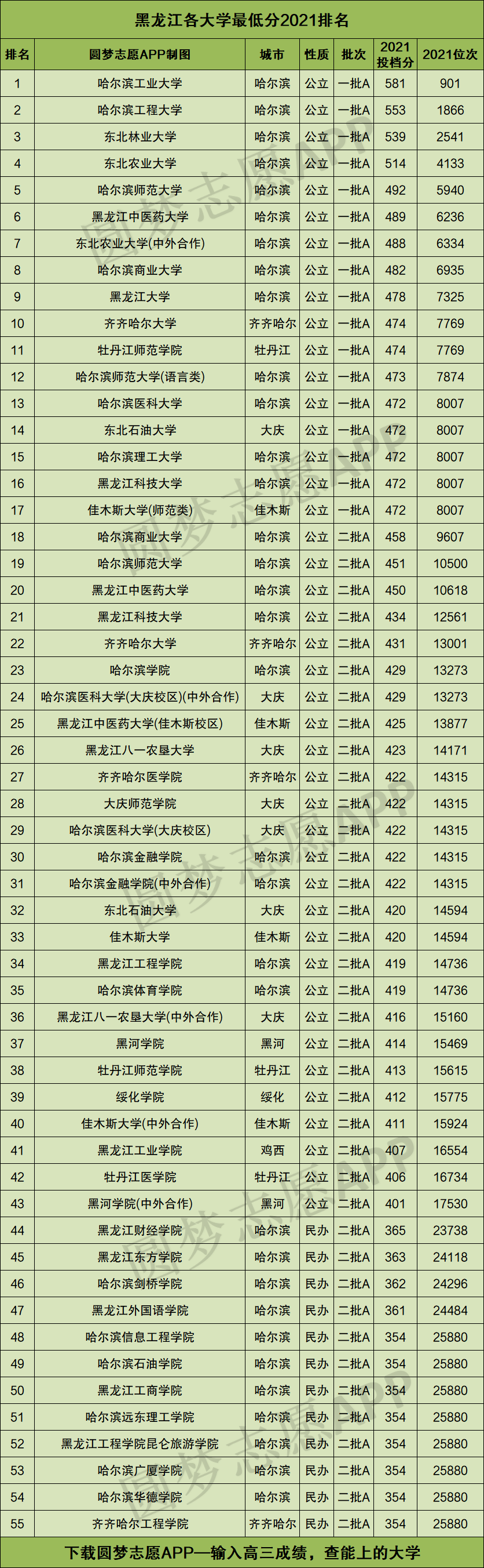 二、黑龙江所有大学排名及录取分数线(本科+文科)