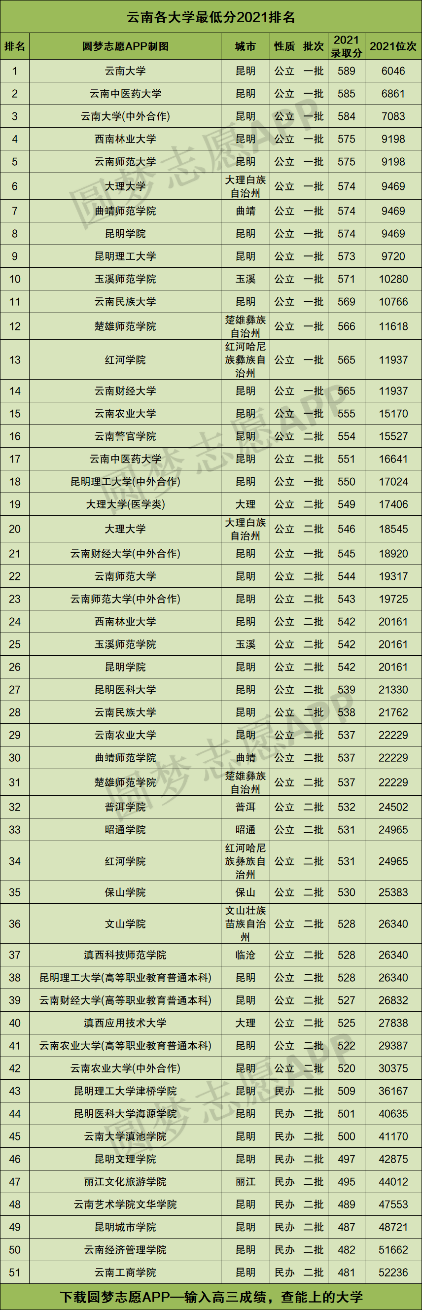 云南所有大学排名和录取分数线,这份资料对于2022年即将面临高考志愿填报的同学来说,非常重要。本文将以2021年各学校文科最低分为标准进行排序,为大家奉上文科版本的云南本科大学排行榜一览表。