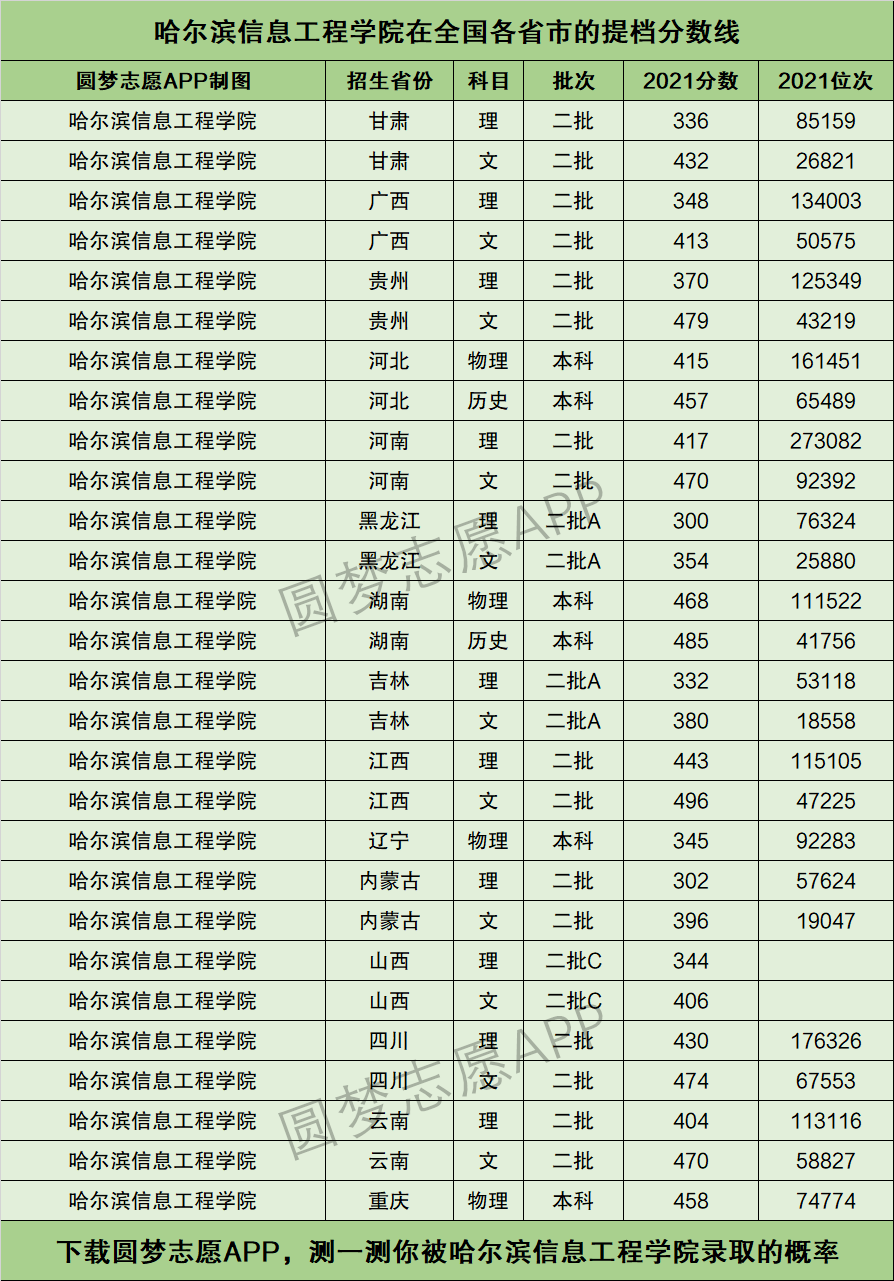 三、哈尔滨信息工程学院在全国各省市的提档线汇总