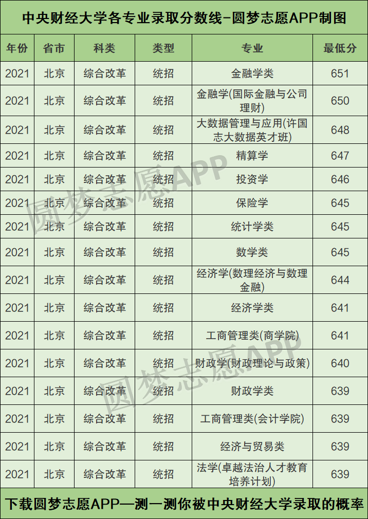 一、中央财经大学各专业录取分数线2021是多少分?