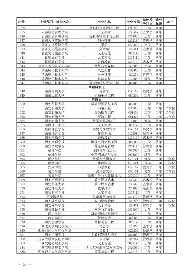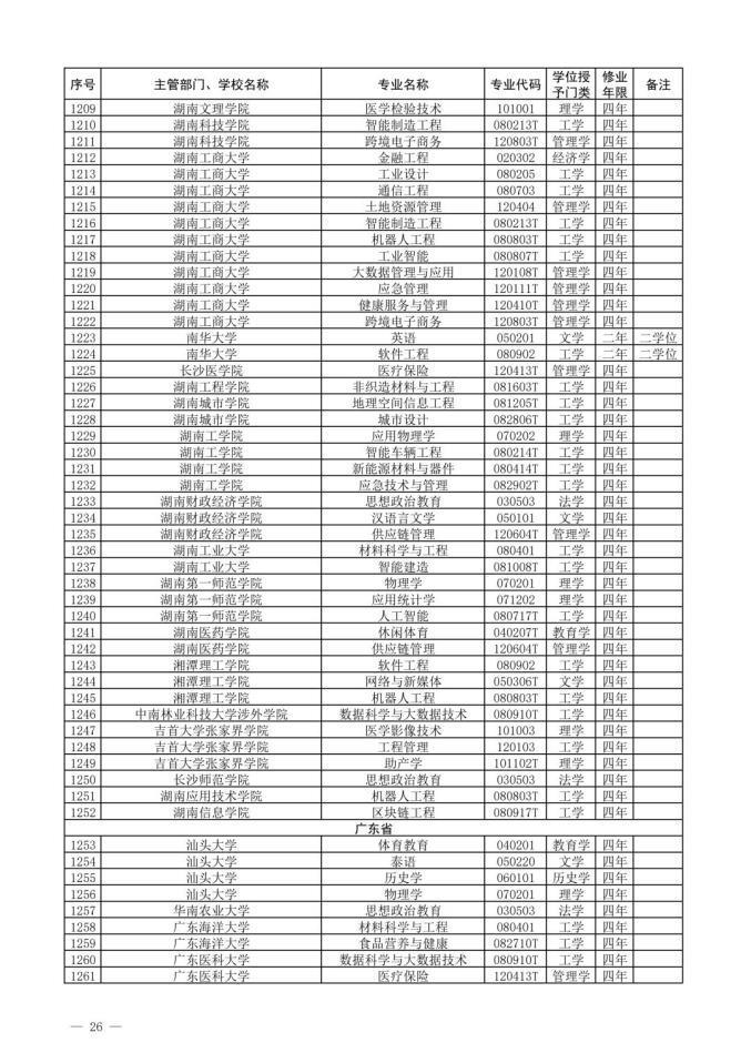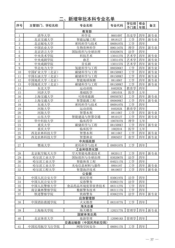 1、新专业名单