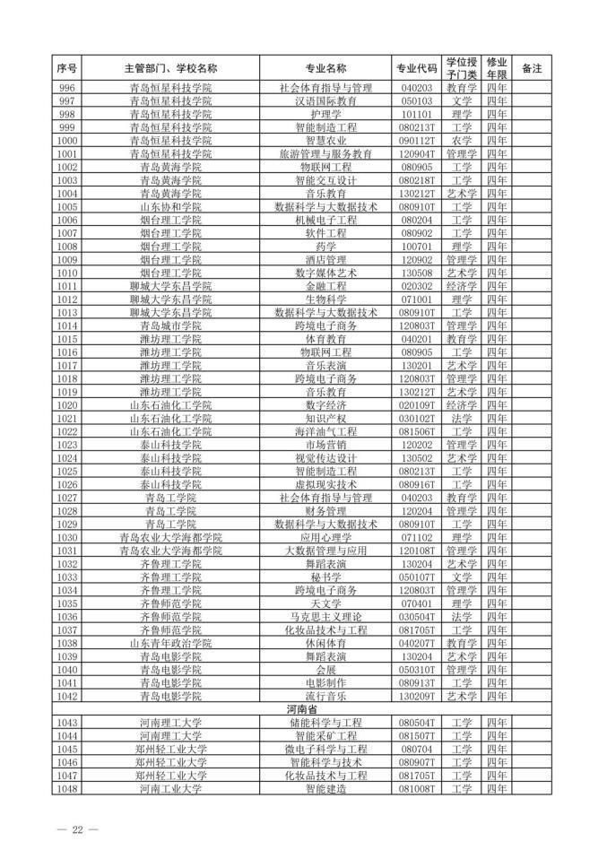 一、2022年新增本科专业公示
