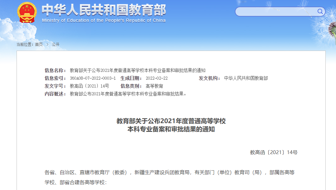 近日,教育部公布了2021年度普通高等学校本科专业备案和审批结果,新增1961个专业点、撤销804个专业点,31种新专业列入《普通高等学校本科专业目录》。具体名单跟小编一起来看——