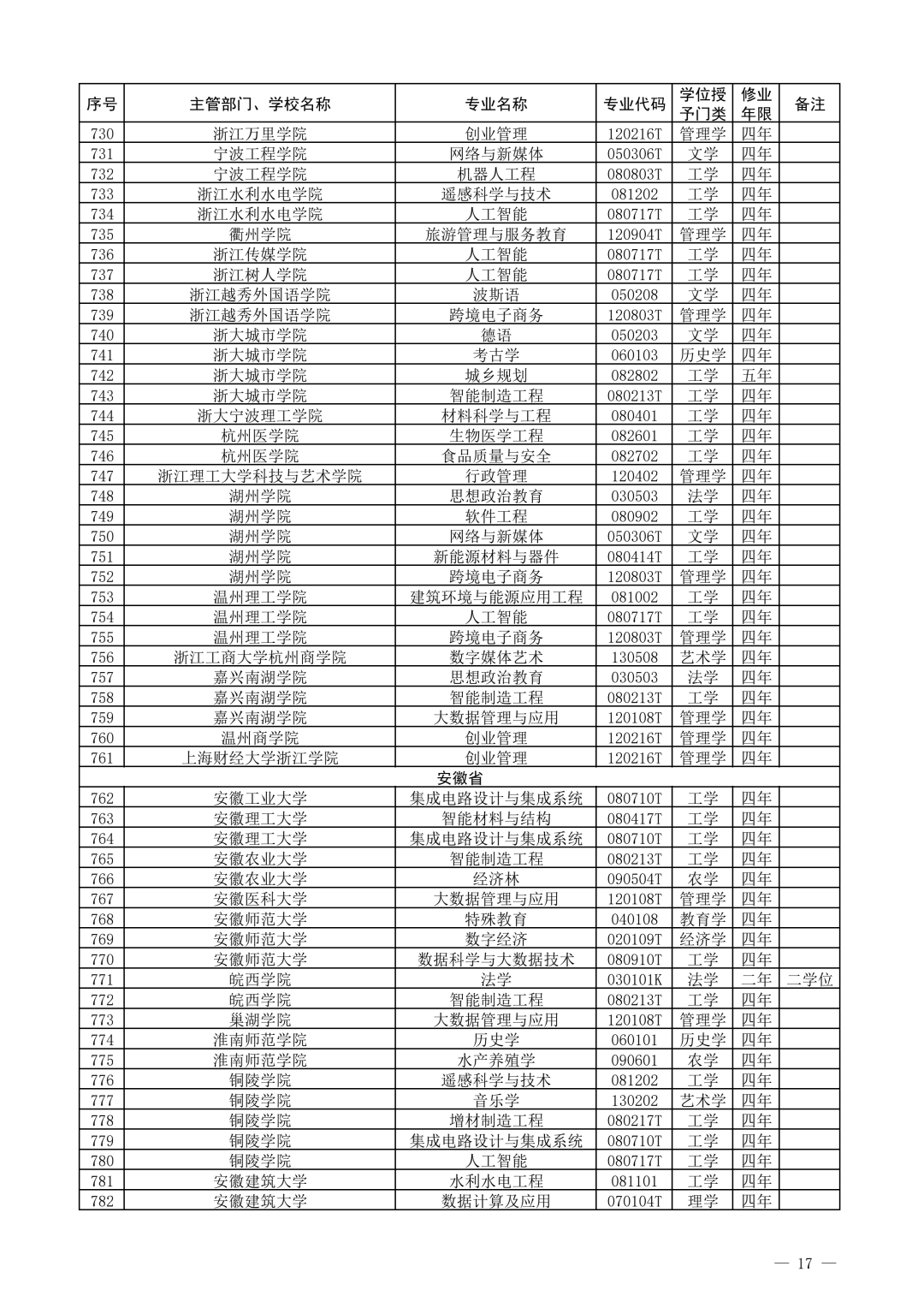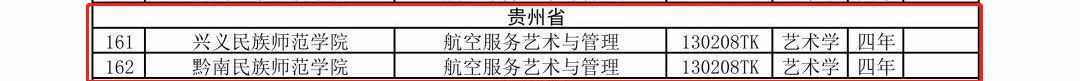 新增备案本科专业名单(贵州省)