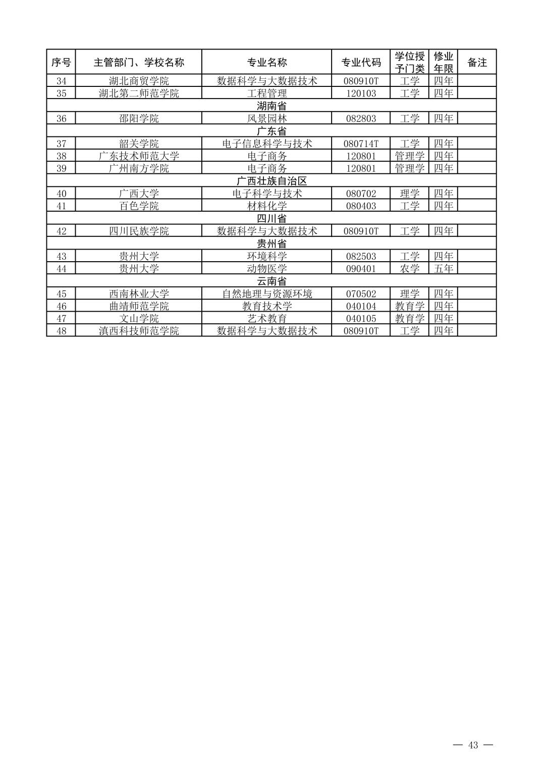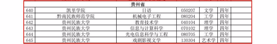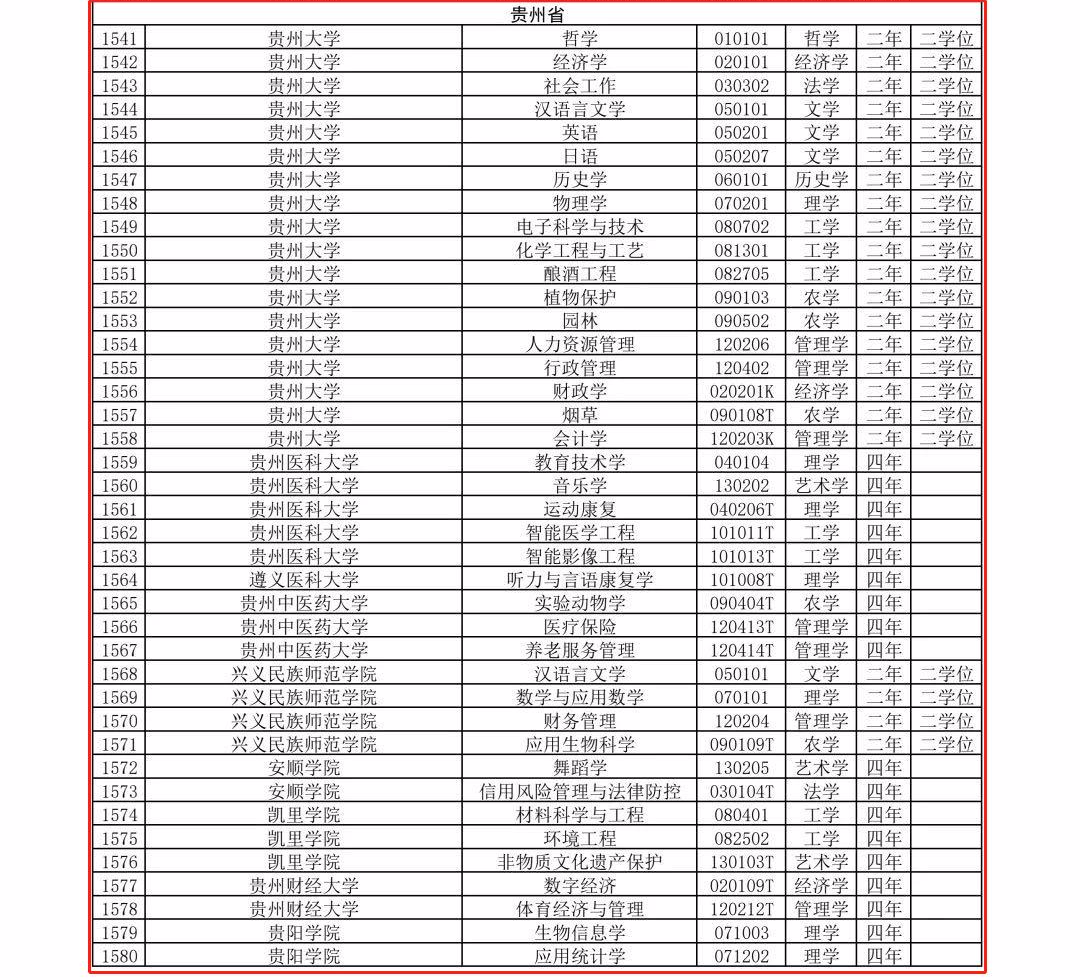 新增审批本科专业名单(贵州省)