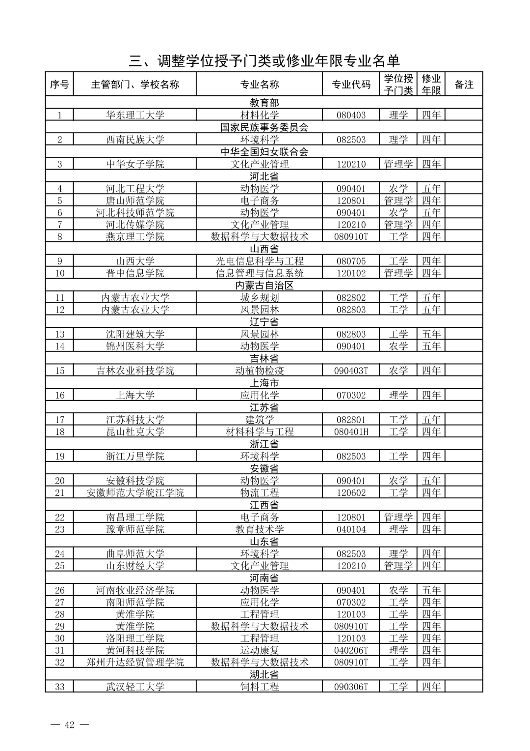 调整学位授予门类或修业年限