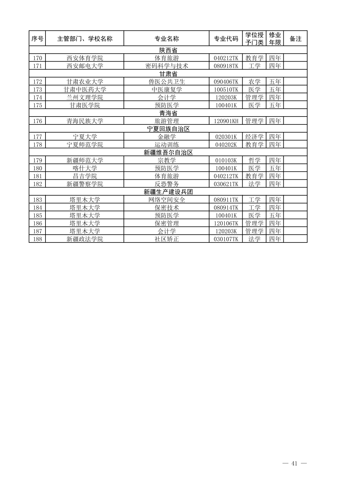 经申报、公示、审核等程序,教育部对各地各高校申请备案的专业予以备案,并根据高等学校专业设置与教学指导委员会评议结果,确定了同意设置的国家控制布点专业和尚未列入专业目录的新专业名单。