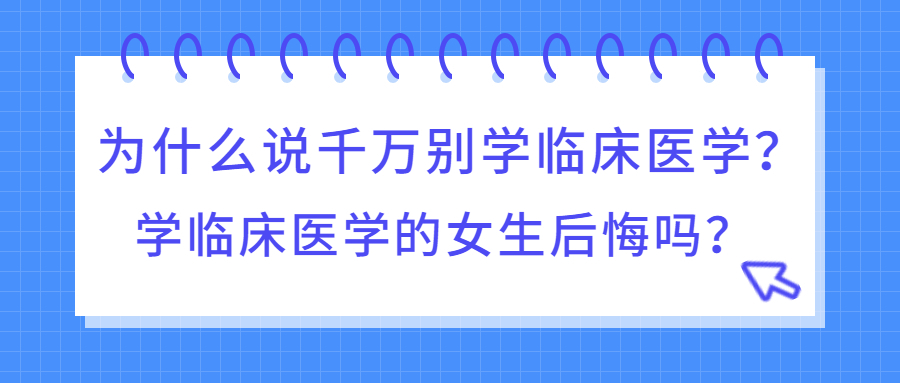 当一名医生治病救人是很多人的梦想,因此每年高考结束后各高校的医学类专业都是大家报考的热门专业。其中临床医学最为火爆,是很多人都会选择的医学专业,但为什么有人说千万别学临床医学?学临床医学的女生后悔吗?