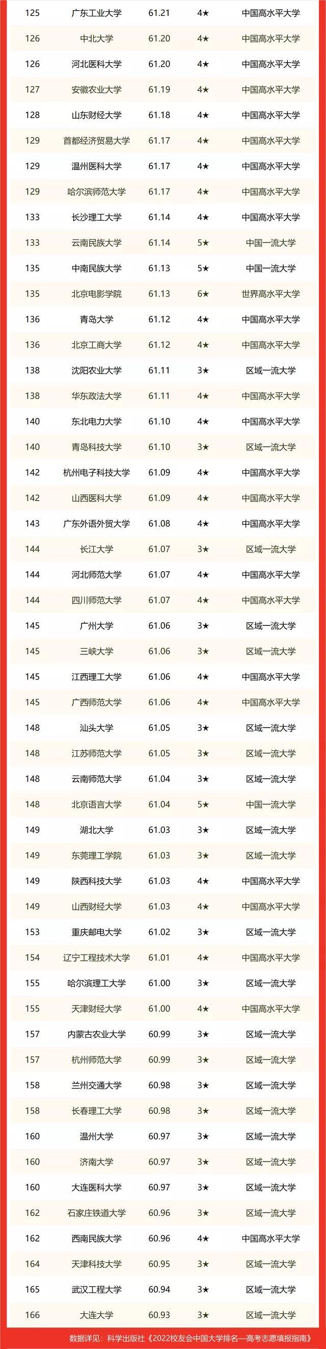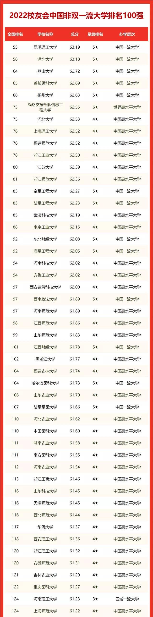 二、2022中国非双一流大学排名表(前100强)