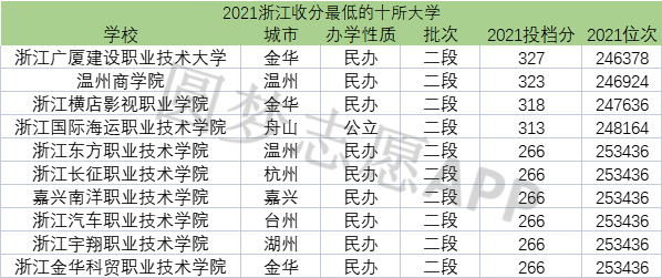 上文所提到的垃圾大学最喜欢坑骗的就是高考分数较低的学生,为此老师根据浙江省教育考试院公布的2021年招录数据,为大家整理了2021年浙江收分最低的大学,各位低分同学也可以选择这些学校报考,千万不能被野鸡院校所骗。