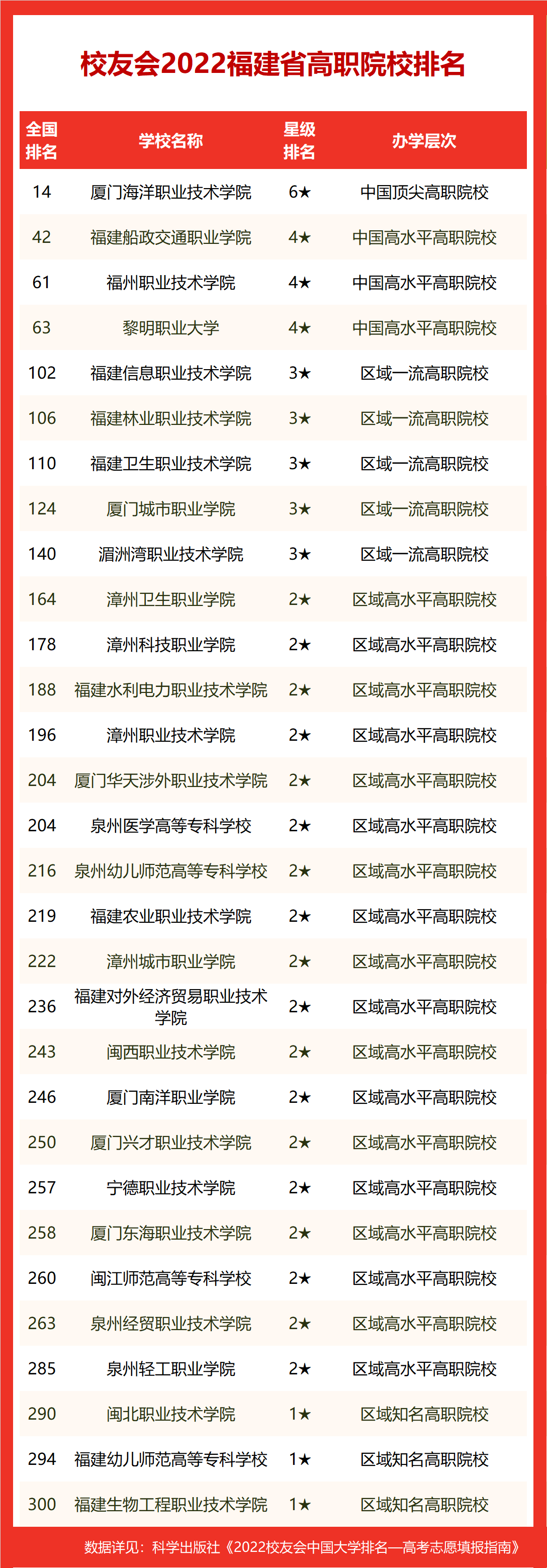 厦门海洋职业技术学院雄居2022福建省高职院校排名冠军,福州职业技术学院跻身前3强
