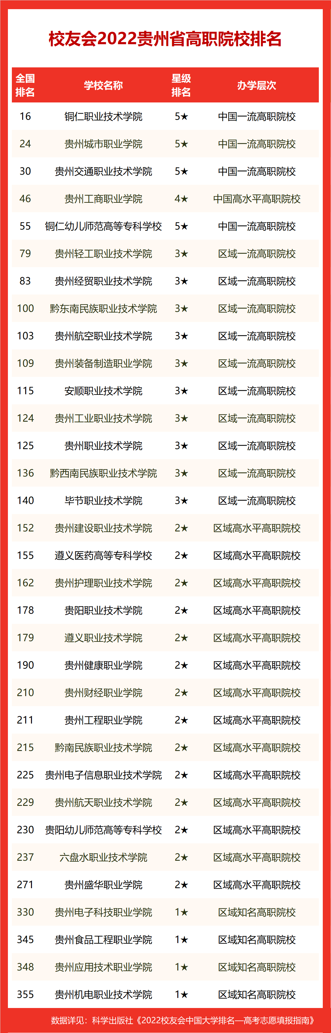 铜仁职业技术学院雄居2022贵州省高职院校排名冠军,贵州交通职业技术学院跻身前3强