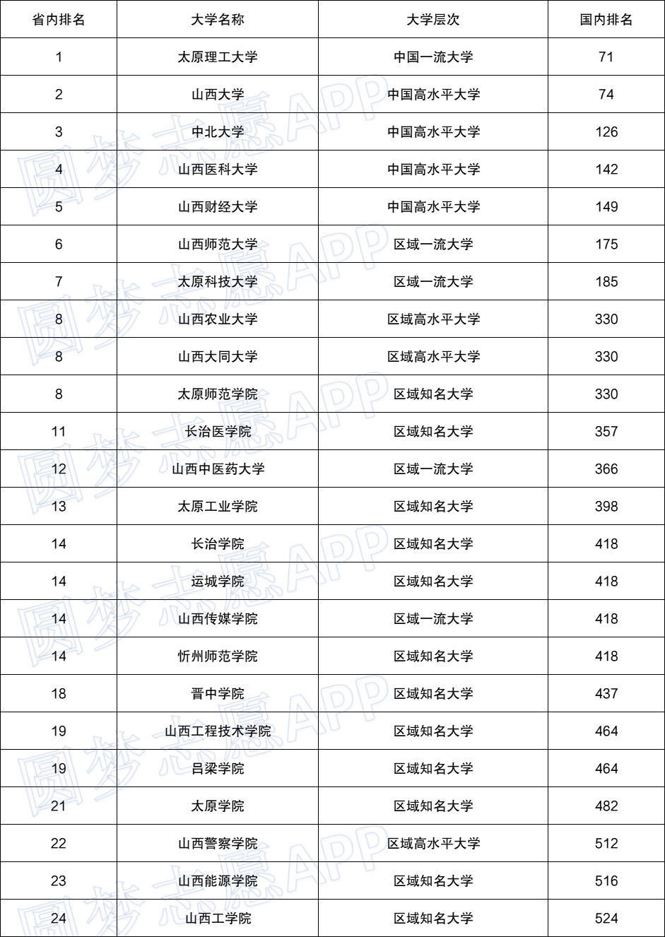 如欲了解更多关于山西省大学排名的信息,各位可以“”,APP内有专业的老师为您提供最权威最专业的数据。