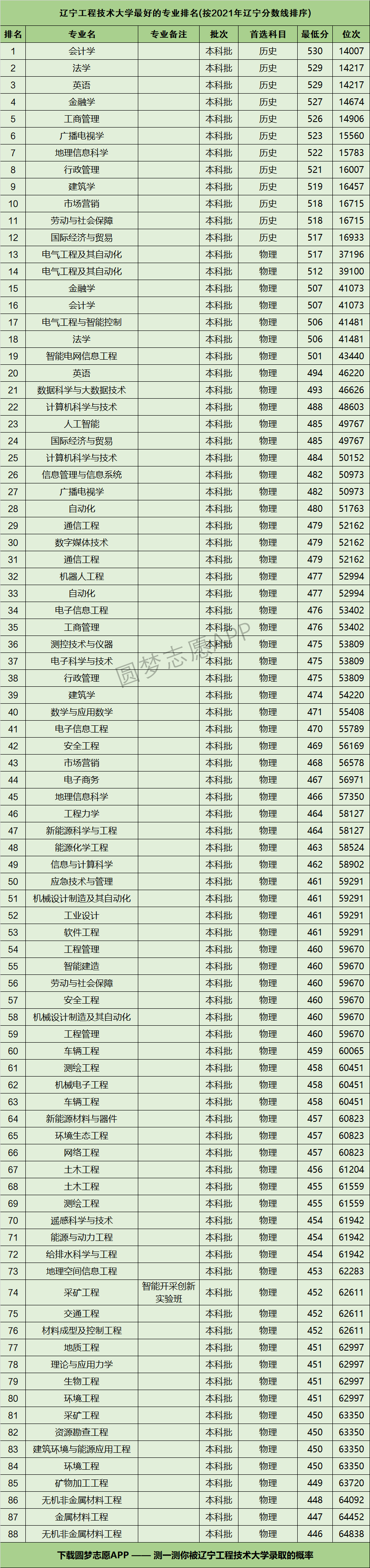 本文将以辽宁工程技术大学在辽宁2021年高考的录取情况为例,为大家展示辽宁工程技术大学最好的专业排名。