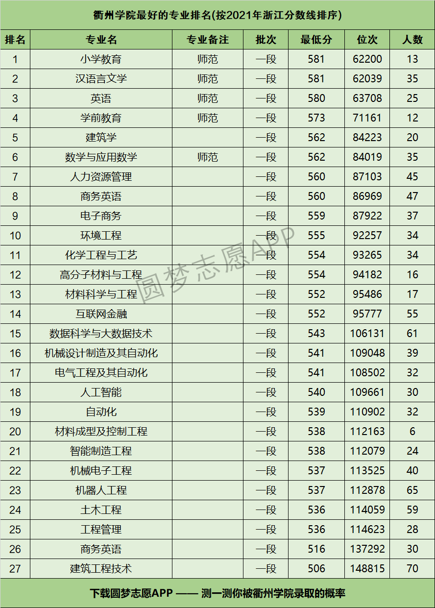 友情提醒:,可查阅衢州学院在你的高考省份各专业的录取分数线、位次排名。(各大手机应用市场均可)