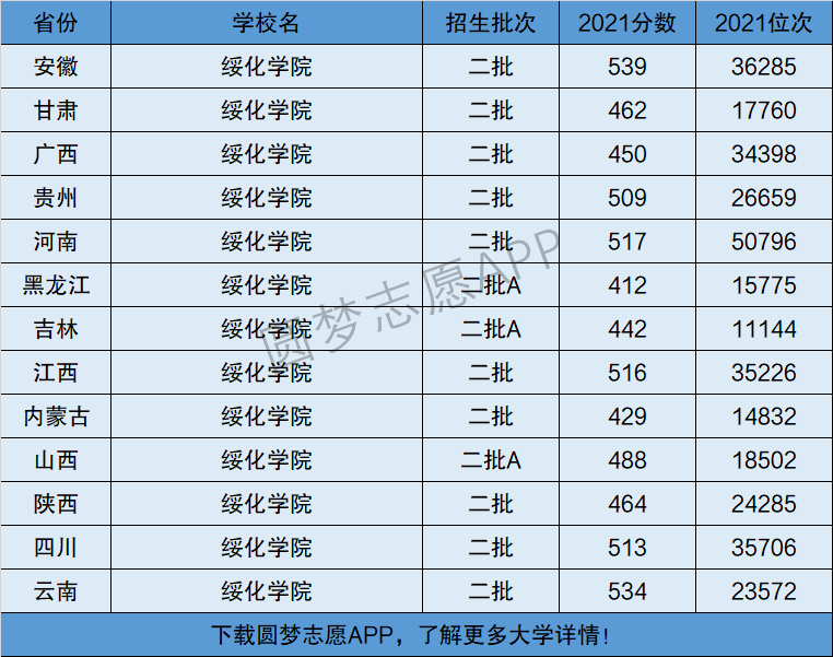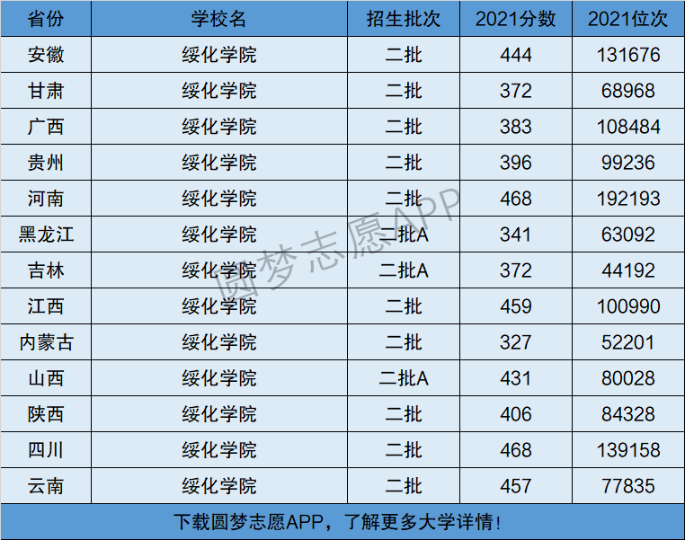 2、绥化学院在全国普通高考省份的【理科】招录数据,包含招生批次等信息: