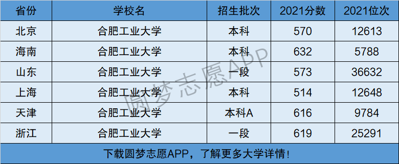 下面将为大家展示合肥工业大学2021年在全国各省市的最低分数线和位次,大家可以在了解合肥工业大学在全国各省详细招生批次的同时,也顺便看看合肥工业大学的招生录取分数线是多少!