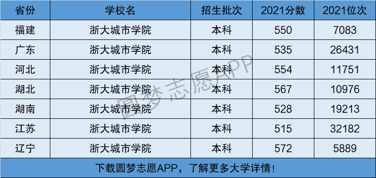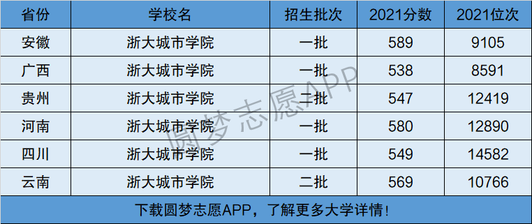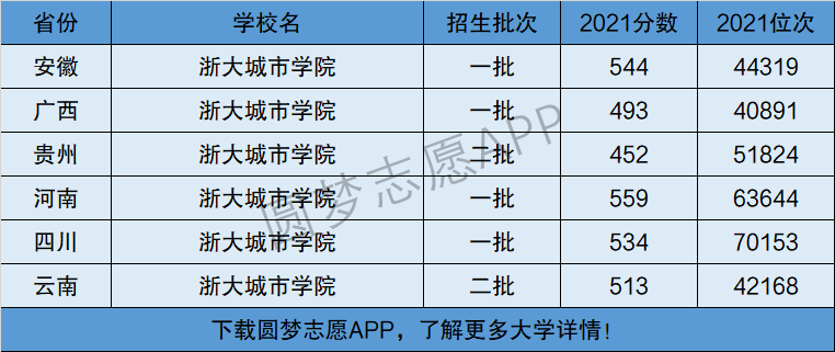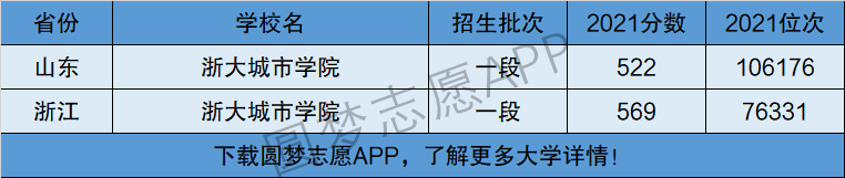 下面将为大家展示浙大城市学院2021年在全国各省市的最低分数线和位次,大家可以在了解浙大城市学院在全国各省详细招生批次的同时,也顺便看看浙大城市学院的招生录取分数线是多少!