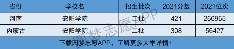 据悉,安阳学院2021年高考在全国4个省市均有招生,在其中2个省份为本科二批招生,在其中已经合并了一本二本的2个省份中均为本科批招生。