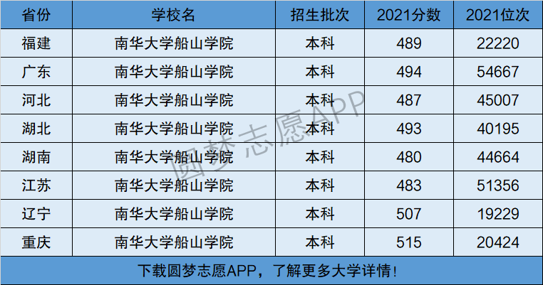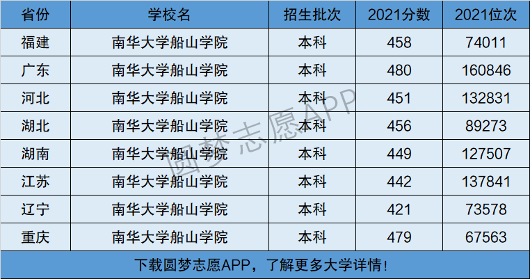 下面将为大家展示南华大学船山学院2021年在全国各省市的最低分数线和位次,大家可以在了解南华大学船山学院在全国各省详细招生批次的同时,也顺便看看南华大学船山学院的招生录取分数线是多少!