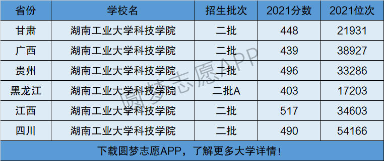 2、湖南工业大学科技学院在全国普通高考省份的【理科】招录数据,包含招生批次等信息: