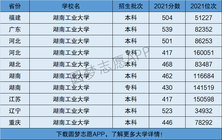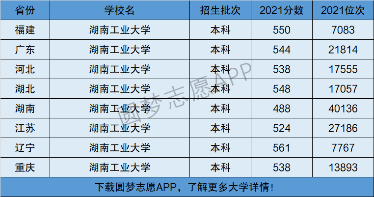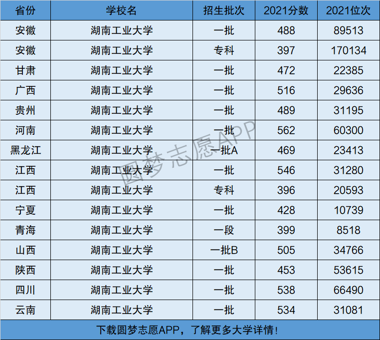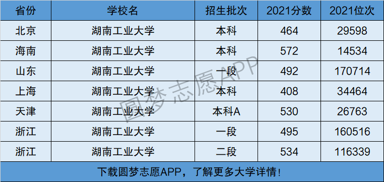 下面将为大家展示湖南工业大学2021年在全国各省市的最低分数线和位次,大家可以在了解湖南工业大学在全国各省详细招生批次的同时,也顺便看看湖南工业大学的招生录取分数线是多少!