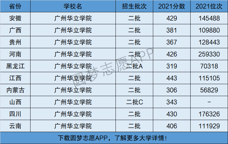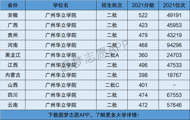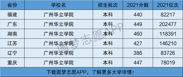 下面将为大家展示广州华立学院2021年在全国各省市的最低分数线和位次,大家可以在了解广州华立学院在全国各省详细招生批次的同时,也顺便看看广州华立学院的招生录取分数线是多少!