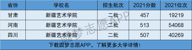 1、新疆艺术学院在全国普通高考省份的【文科】招录数据,包含招生批次等信息: