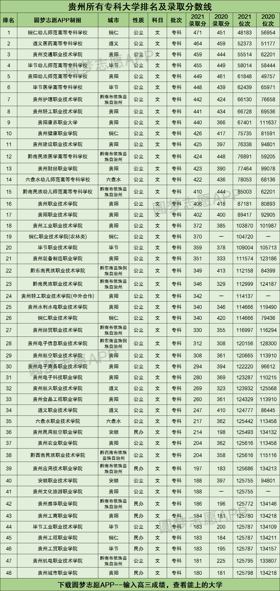 2021年高考贵州省内所有专科大学排名及文科最低录取分数线、位次等数据,对于贵州省2021年文科成绩在本科线以下的同学来说非常具有价值。本文就为大家整理了这份信息,希望能助力贵州省内全部的文科专科高三同学圆梦大学!