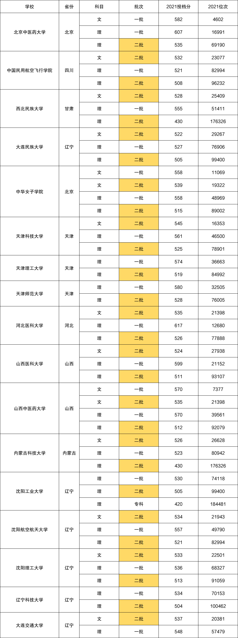 一.一二本兼招大学名单