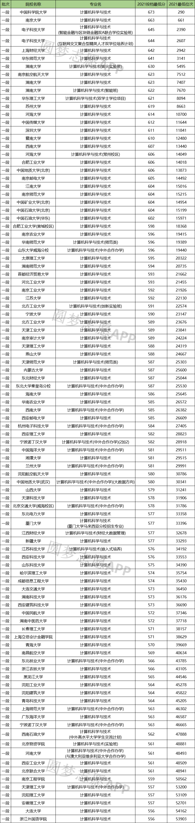 3、计算机专业录取分数线排名2021