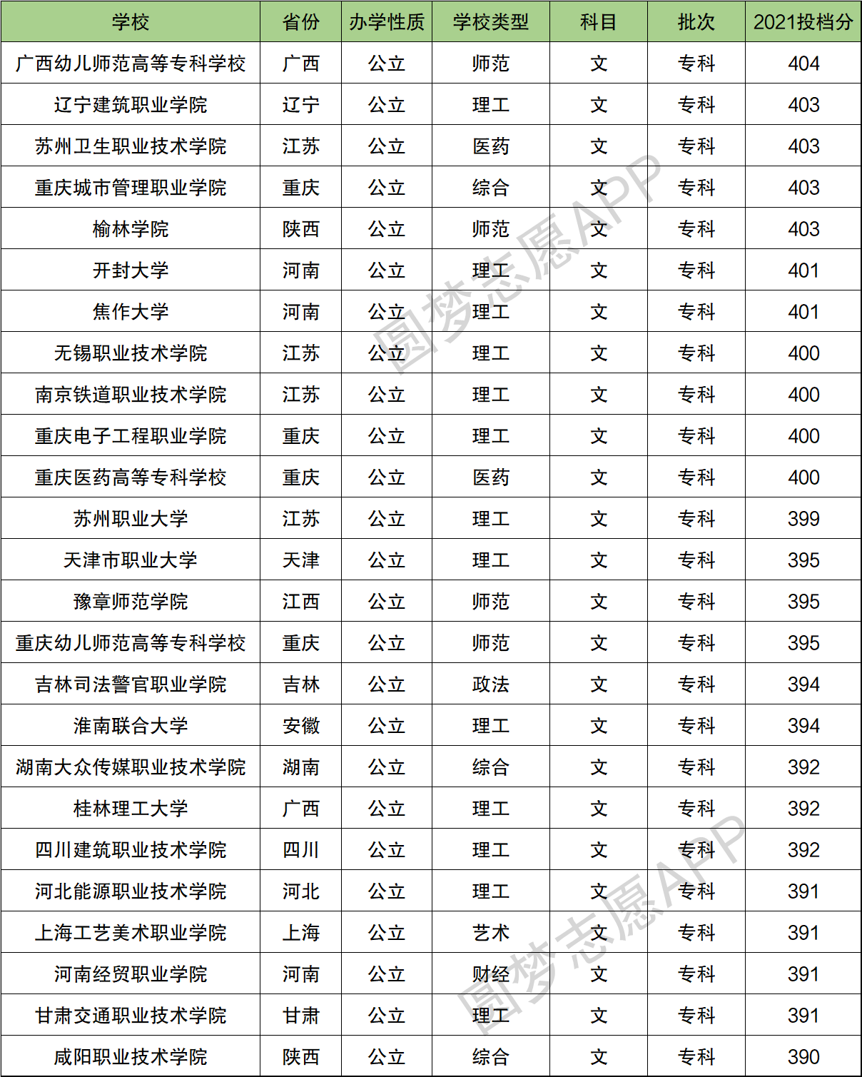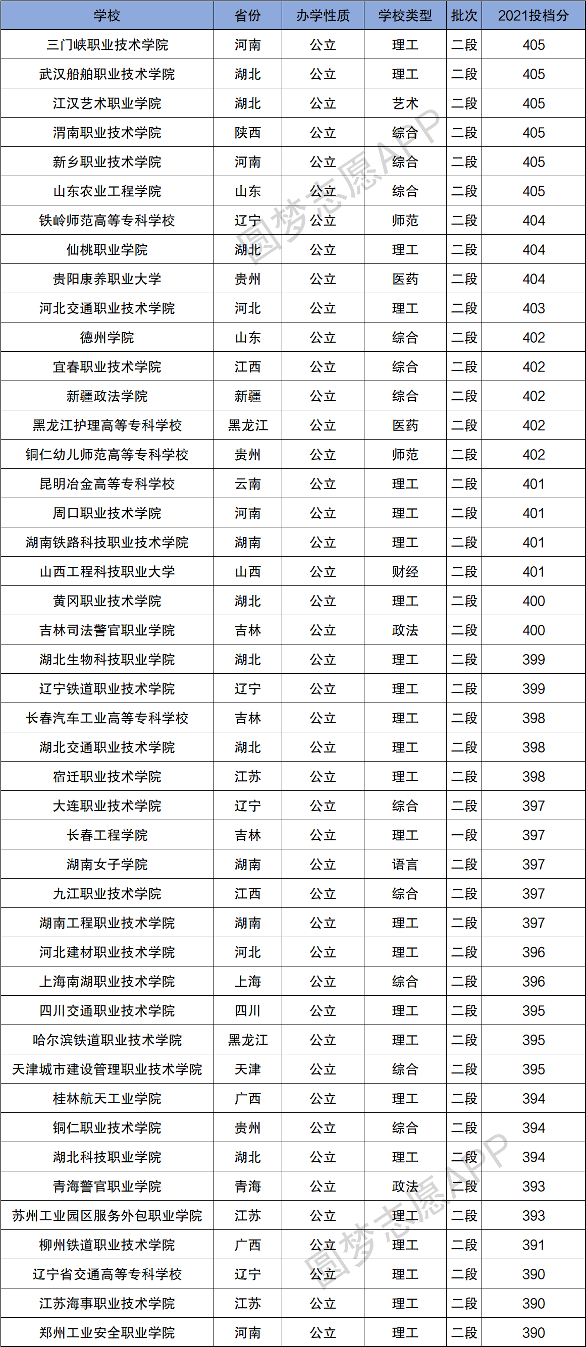 2021年陕西省的二本文科最低分为406分,理科最低为341分,所以理科在400分左右可以上本科,但文科基本就只能读高职专科院校了。