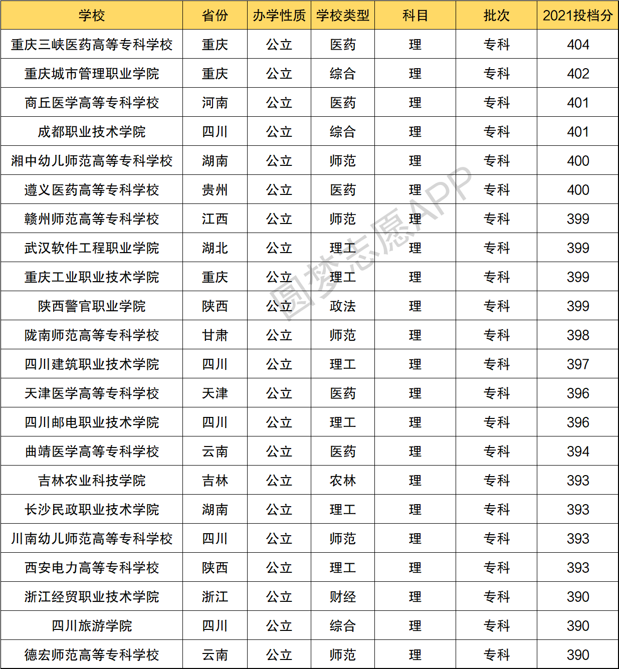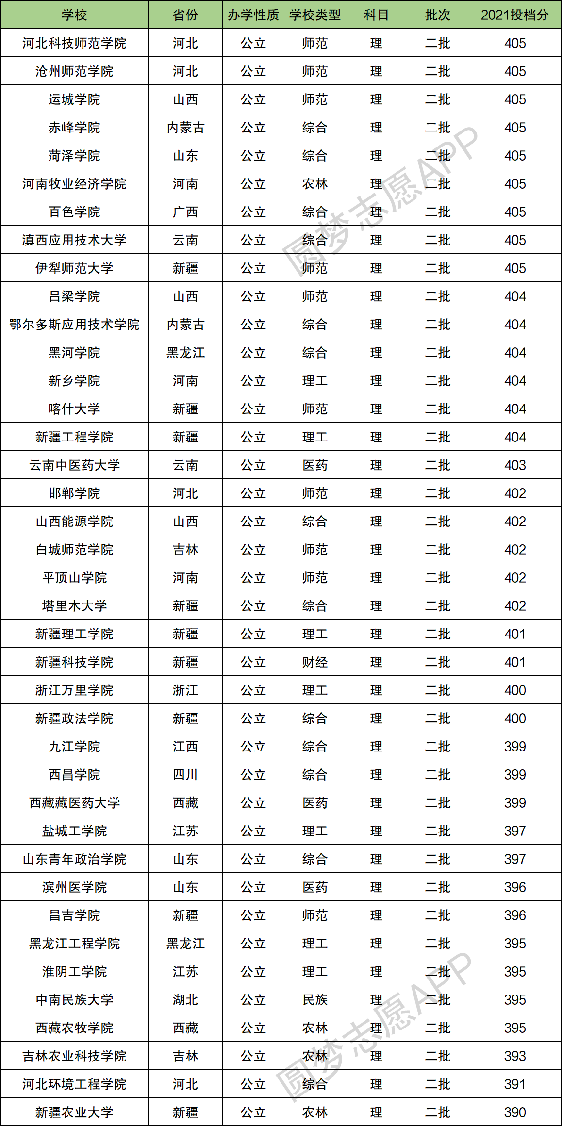 以下为2021年四川省、陕西省、山东省390分-400分能报考的公办大学名单: