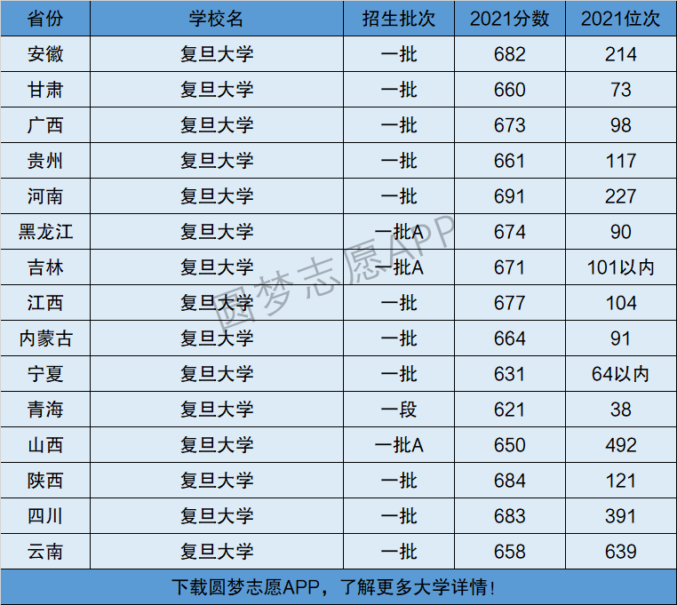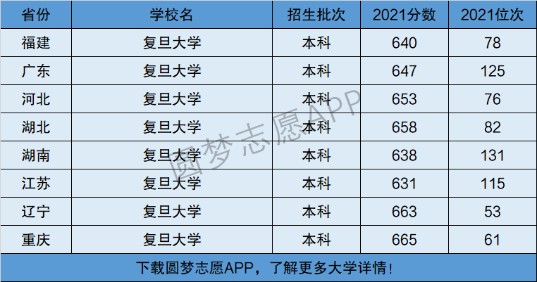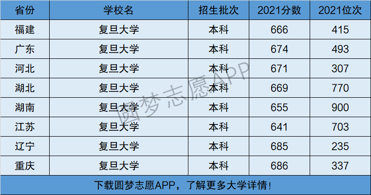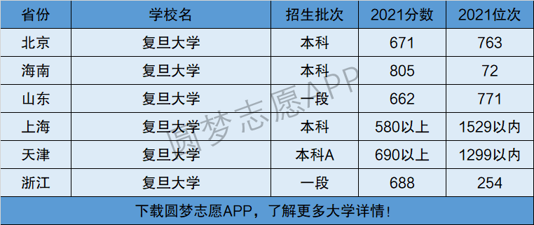 下面将为大家展示复旦大学2021年在全国各省市的最低分数线和位次,大家可以在了解复旦大学在全国各省详细招生批次的同时,也顺便看看复旦大学的招生录取分数线是多少!