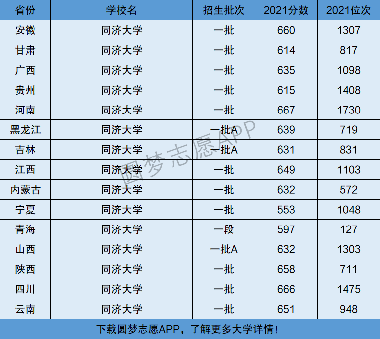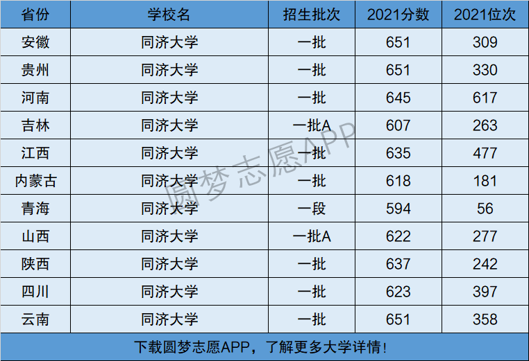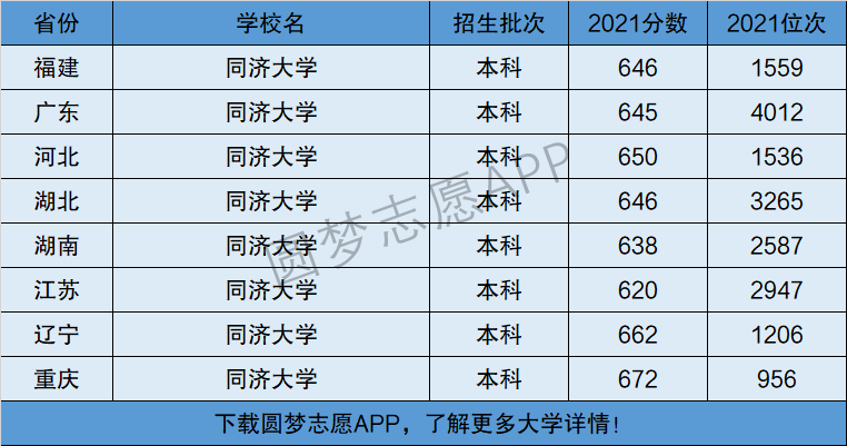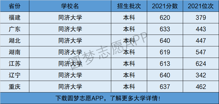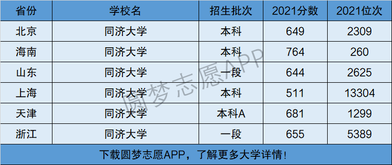 下面将为大家展示同济大学2021年在全国各省市的最低分数线和位次,大家可以在了解同济大学在全国各省详细招生批次的同时,也顺便看看同济大学的招生录取分数线是多少!