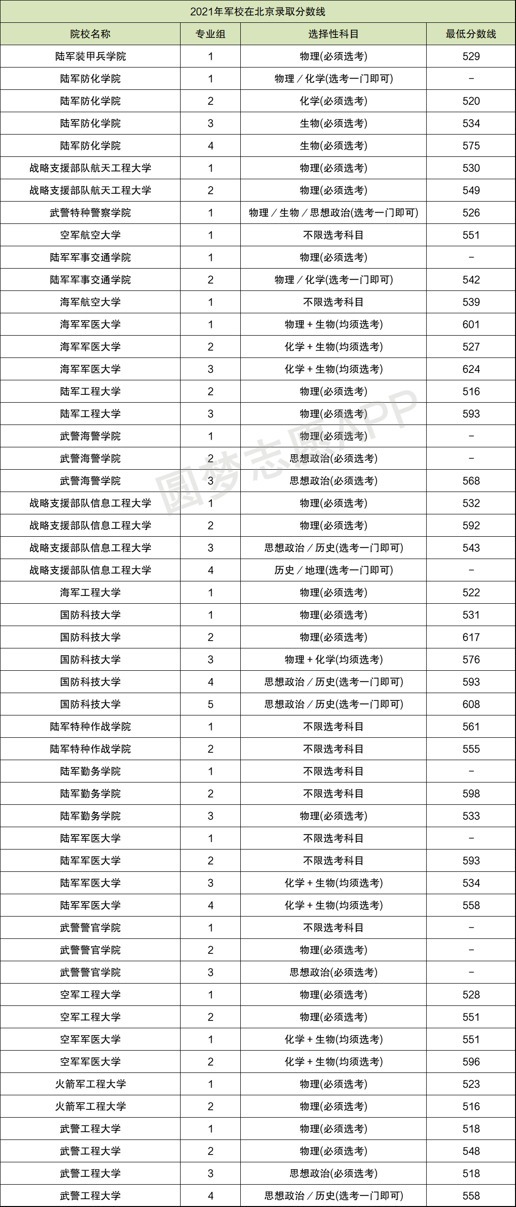 北京因为实行的是“3+3”新高考模式,所以分数线的整理不用分科进行,小编就直接为大家整理出2021年军校在北京的录取分数线,供大家参考。