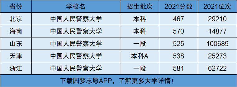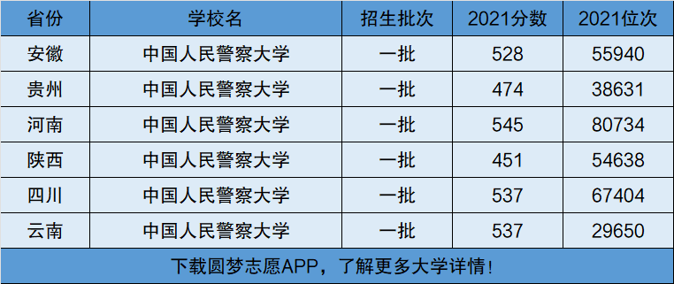 1、中国人民警察大学在全国普通高考省份的【文科】招录数据,包含招生批次等信息: