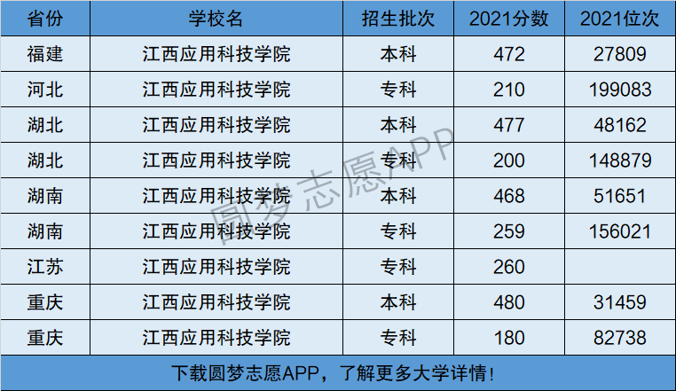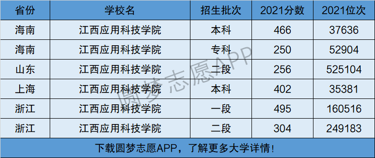 据悉,江西应用科技学院2021年高考在全国19个省市均有招生,在其中10个省份为本科二批招生,在其中已经合并了一本二本的6个省份中均为本科批招生,在浙江省的一段招生。