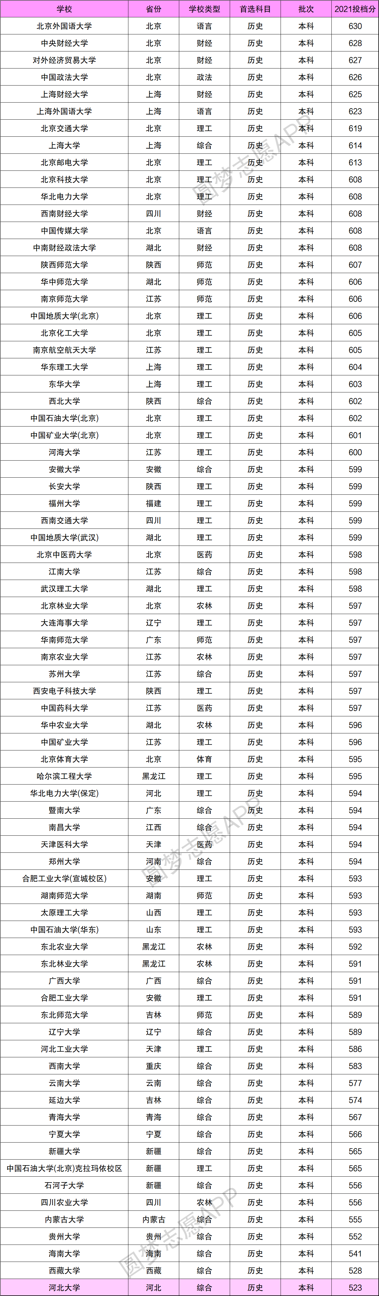2021年历史类最低分523分,物理类最低分500分;